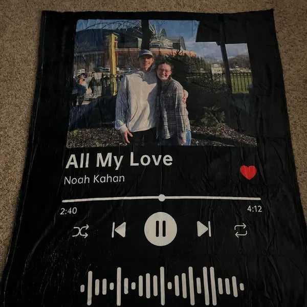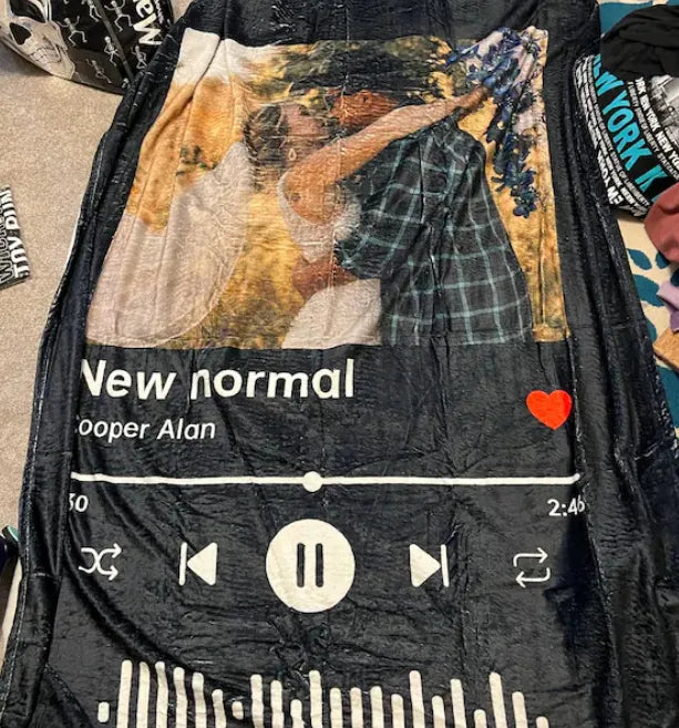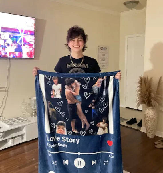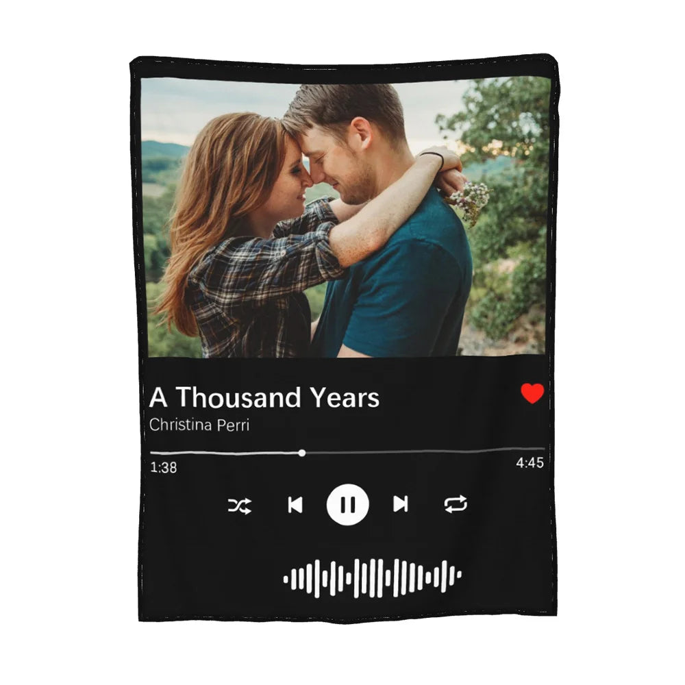 Transformez vos plus beaux souvenirs en une couverture douce, chaude et unique. Ajoutez votre photo, le titre de votre chanson, le nom de l’artiste et même un code Spotify pour revivre vos émotions à chaque instant.